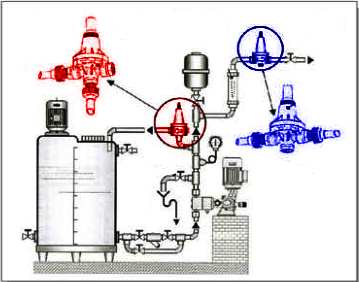 - Перепускные (редукционные) клапана (Max 1050 л/ч).